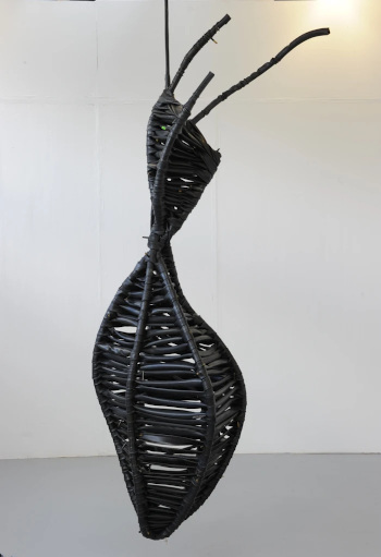 Rubber has many fascinating properties. I particularly like that it can be manipulated and woven to create form. The act of weaving enables me to incorporate other materials and objects that can shape, even change, a final piece. This constant evaluation means that nothing is predetermined; there is always something to be found in the process that informs my next piece of work.